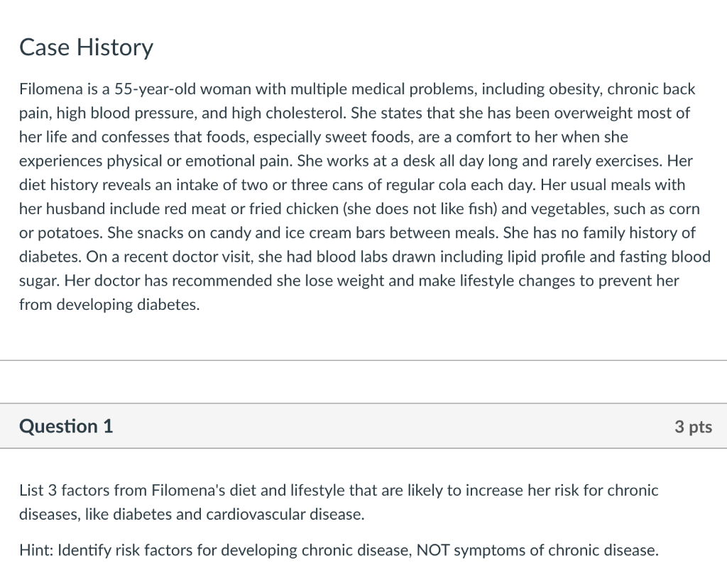 Solved Case History Filomena Is A 55 Year Old Woman With Chegg Com